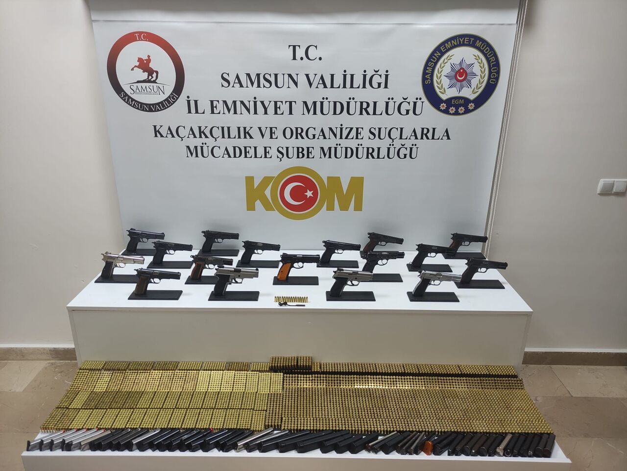 Düzenlenen operasyonla birlikte şüphelilere ait araçta ve ikametlerde yapılan aramalarda; 17 adet ruhsatsız tabanca, 5 bin 670 adet tabanca fişeği, 59 adet şarjör, 1 takım horoz ve iğne tertibatı ele geçirildi.