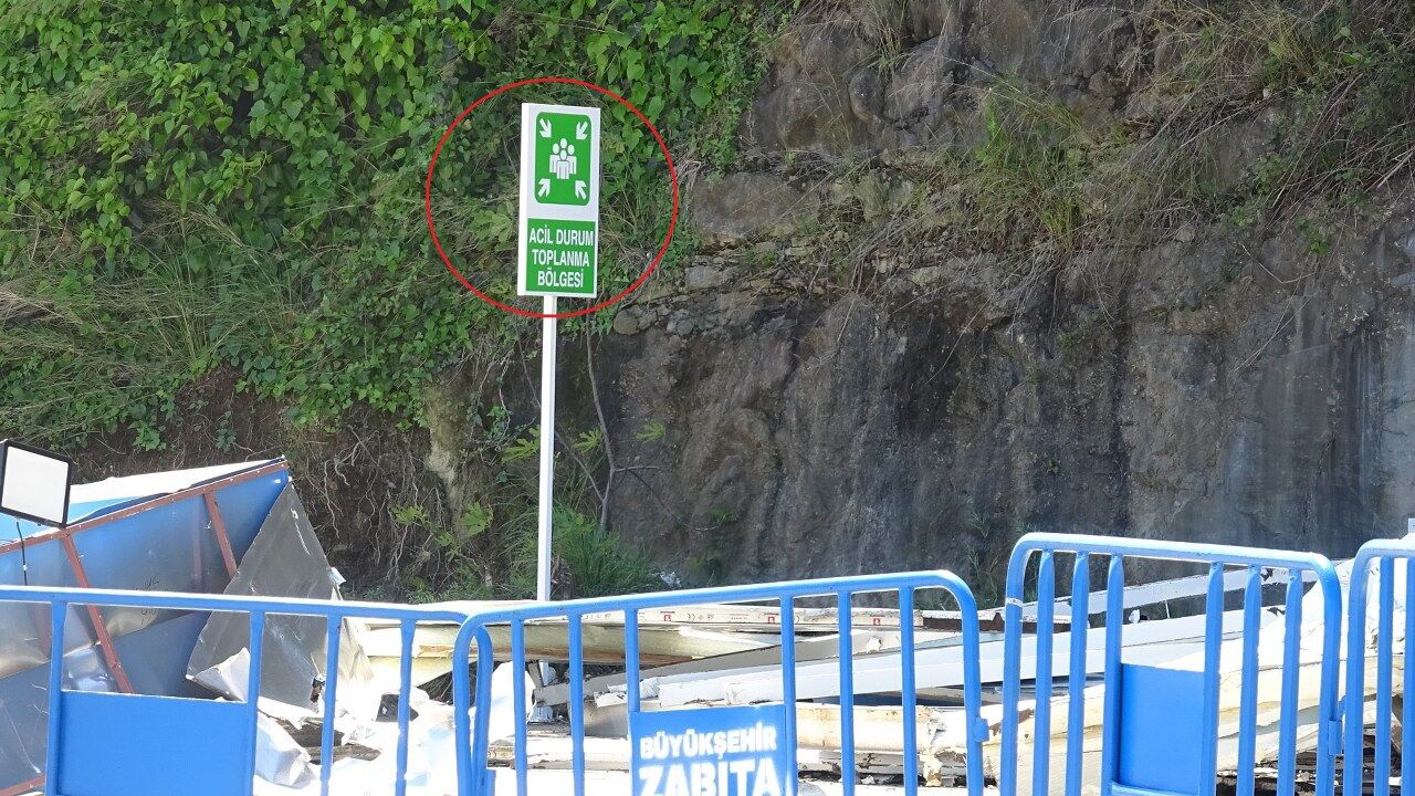 İHA'nın haberine göre, heyelanın meydana geldiği bölgede bulunan "Acil Durum Toplanma Bölgesi" tabelası ise dikkat çekti. AFAD yetkilileri, tabelanın kurumlarına ait olmadığını, işletme tarafından konulmuş olabileceğini ifade etti. Tabelayı kimin koyduğu ise merak konusu oldu.