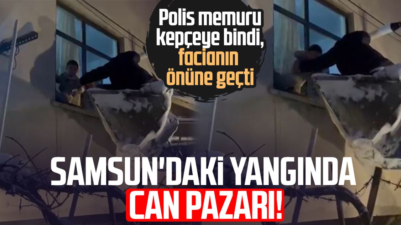Ladik İlçe Emniyet Müdürlüğünde görevli bir polis memuru, iş makinesinin kepçesine binerek dairenin penceresinden S.B'den çocuğunu alarak yere indirdi.