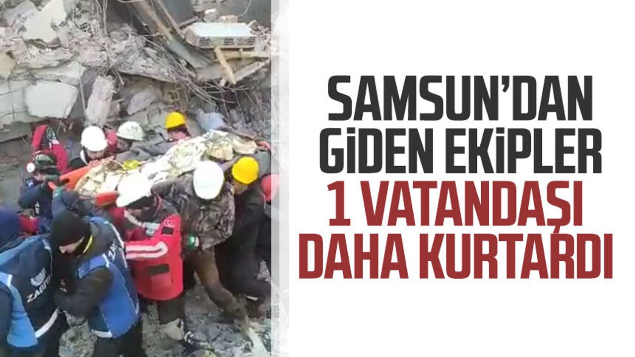 Samsun’dan giden ekipler de enkaz kurtarma çalışmalarına devam ediyor. Bu gün Samsun Valiliğinden yapılan açıklamada öğlen 12.00’de enkaz altından bir vatandaşın daha sağ olarak kurtarıldığını duyurdu.