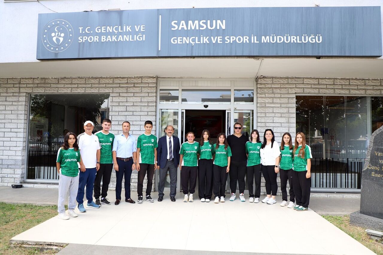 Milli sporcular, Samsun Gençlik ve Spor İl Müdürü Feyzullah Dereci’yi ziyaret ederek, destek ve başarı dileklerini aldılar. Ziyarette Alaçam Gençlik ve Spor İlçe Müdürü Cansu Keskin Karaaslan ile Beden Eğitim Öğretmeni ve Milli Takım Antrenörü Gökhan Bozdemir de yer aldı. İl Müdürü Dereci, milli sporculara üstün başarılar dileyerek, “Samsun olarak sporcularımızla gurur duyuyoruz. Avrupa ve dünya sahnesinde ülkemizi en iyi şekilde temsil edeceklerine inanıyoruz” dedi.