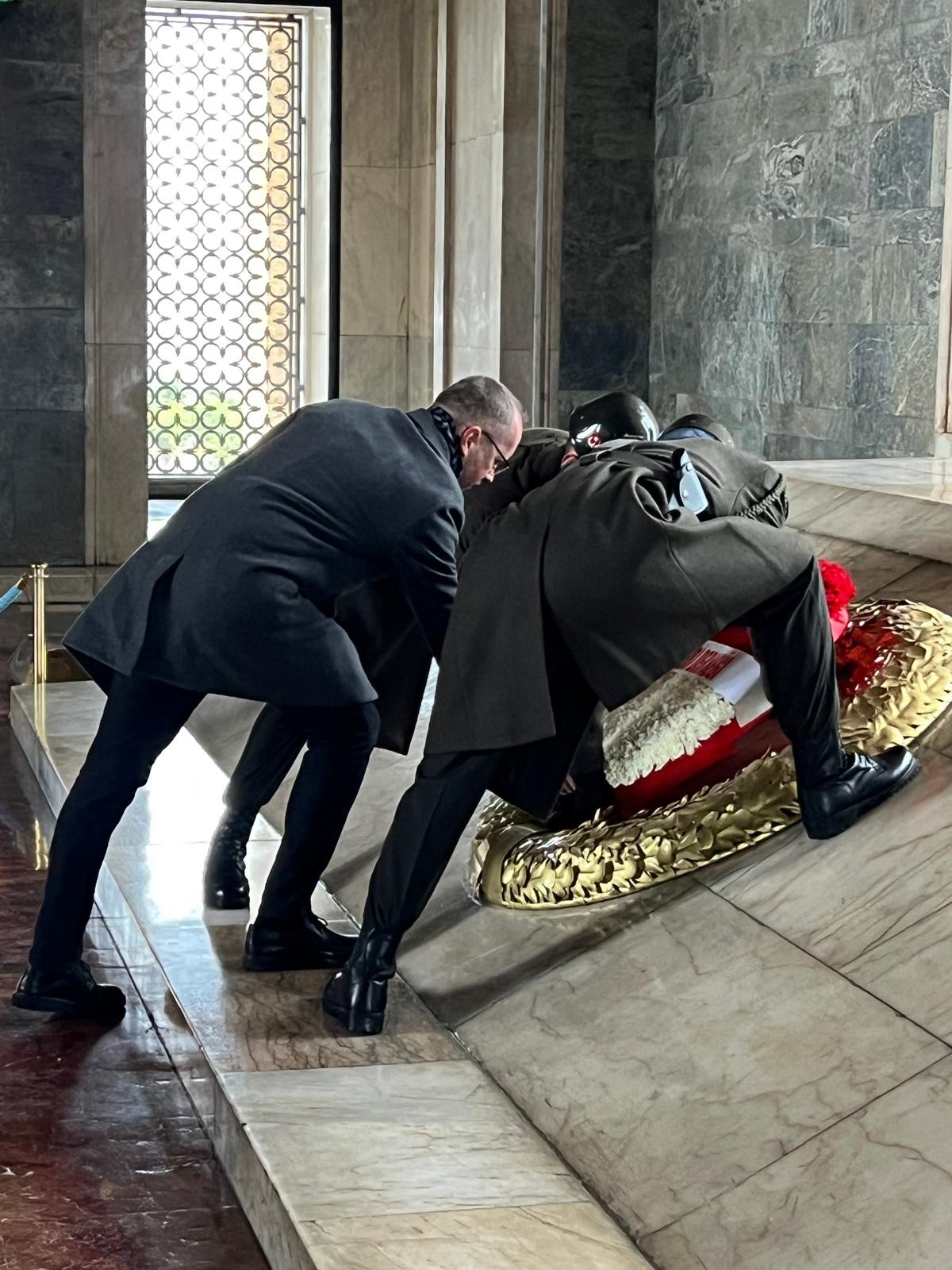 - Heyet Aslanlı Yol yürüyüşü sonrası mozoleye çelenk bıraktı.