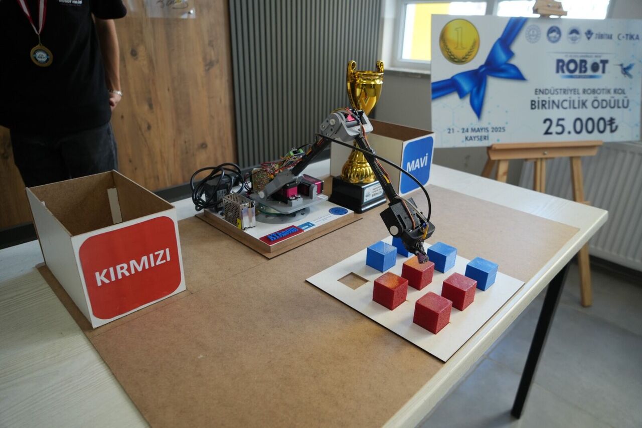 Samsun Atakum Mesleki ve Teknik Anadolu Lisesi, Danışman Öğretmen Hasan Öner, öğrenciler Kerem Köse, Yunus Emre Ünal tarafından yapılan endüstriyel robotik kol, yarışmada verilen rastgele renklerde dizilmiş olan küpleri alarak uygun küplere bırakmak görevini en iyi derece ile bitirerek 42 katılımcı arasında birincilik elde etti.