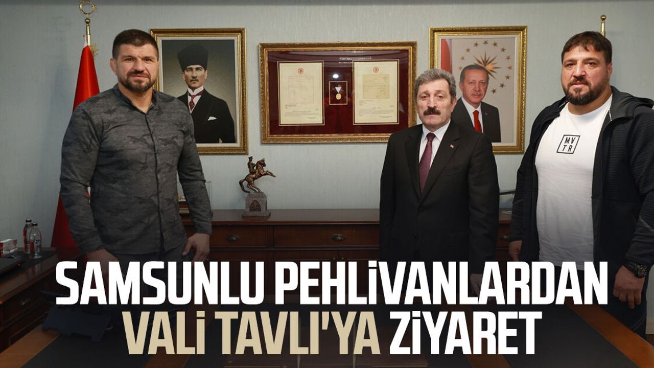 Avrupa Şampiyonu ve Kırkpınar Başpehlivanı Recep Kara ile Kırkpınar Başpehlivanı Şaban Yılmaz, Samsun Valisi Orhan Tavlı’yı makamında ziyaret etti.