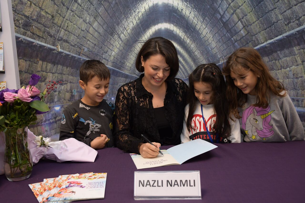 İlk kitabını okuyucularla buluşturduğu için çok heyecanlı ve mutlu olduğunu belirten Nazlı Namlı, yeni masallarının da yolda olduğu müjdesini verdi. Çocuk edebiyatına çok büyük ilgisi olduğunu belirten Yazar Nazlı Namlı, “Meyveli Çikolata Ağacı ve Ejderha benim ilk kitabım. Üçüncü baskıya çıkan masal kitabımda özellikle doğa sevgisi, arkadaşlık, dayanışma ve duygu temalarına yer verdim. Aynı zamanda İngilizce öğretmeniyim. Mesleğimden dolayı çocuklarla uzun zaman geçirdim. Onların gözünden bakabilmek ve onlara yol göstermeyi hedeflemek çok önemli. En temelinde de çocukları çok seviyorum. Tüm bu enerji akışı beni masal yazmaya yönlendirdi ve ilk olarak bu kitap ortaya çıktı. Kısacası bana ilham kaynağı oldular. Çocuklarımızın da kitabıma büyük ilgi göstermesi beni ayrıca çok mutlu etti. Bugün bunu tekrar anlamış oldum. Bu güzel duygularla da yazmaya devam ediyorum ve edeceğim. Çok yakında yeni kitaplarım da okuyucularla buluşmuş olacak. Yazdığım masallarımda çocuklarımıza anlamlı güzel bir hatıra bırakmak istiyorum. Onlara dokunabildiysem ne mutlu bana. Bugün imza günüme teşrif eden başta çocuklar olmak üzere herkese teşekkür ediyorum” dedi.