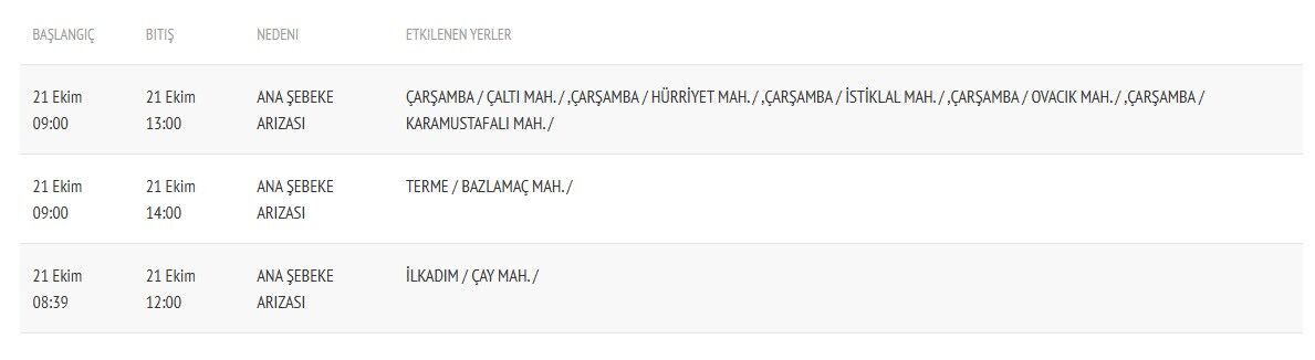 Samsun Su ve Kanalizasyon İdaresi (SASKİ), 21 Ekim Salı günü yapılacak ana şebeke arızaları sebebiyle bazı bölgelerde su kesintisi uygulanacağını duyurdu.