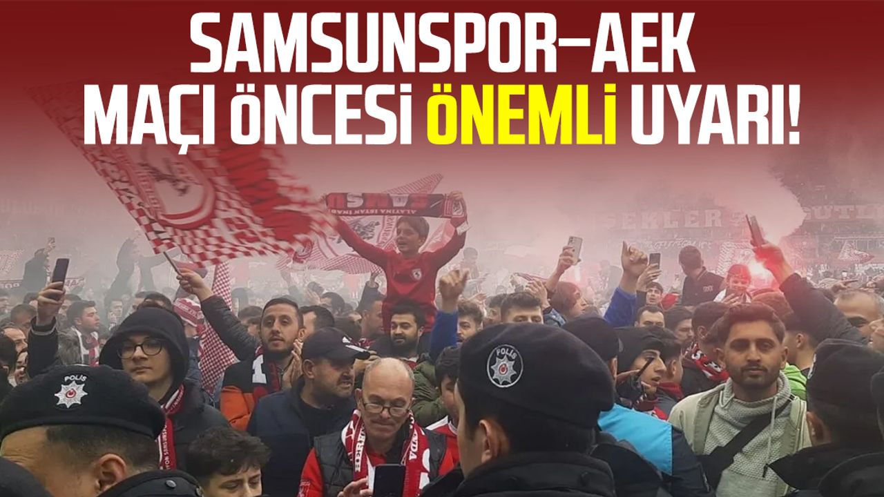 - Samsunspor–AEK maçı öncesi taraftarlara giriş ve güvenlik uyarısı yapıldı.