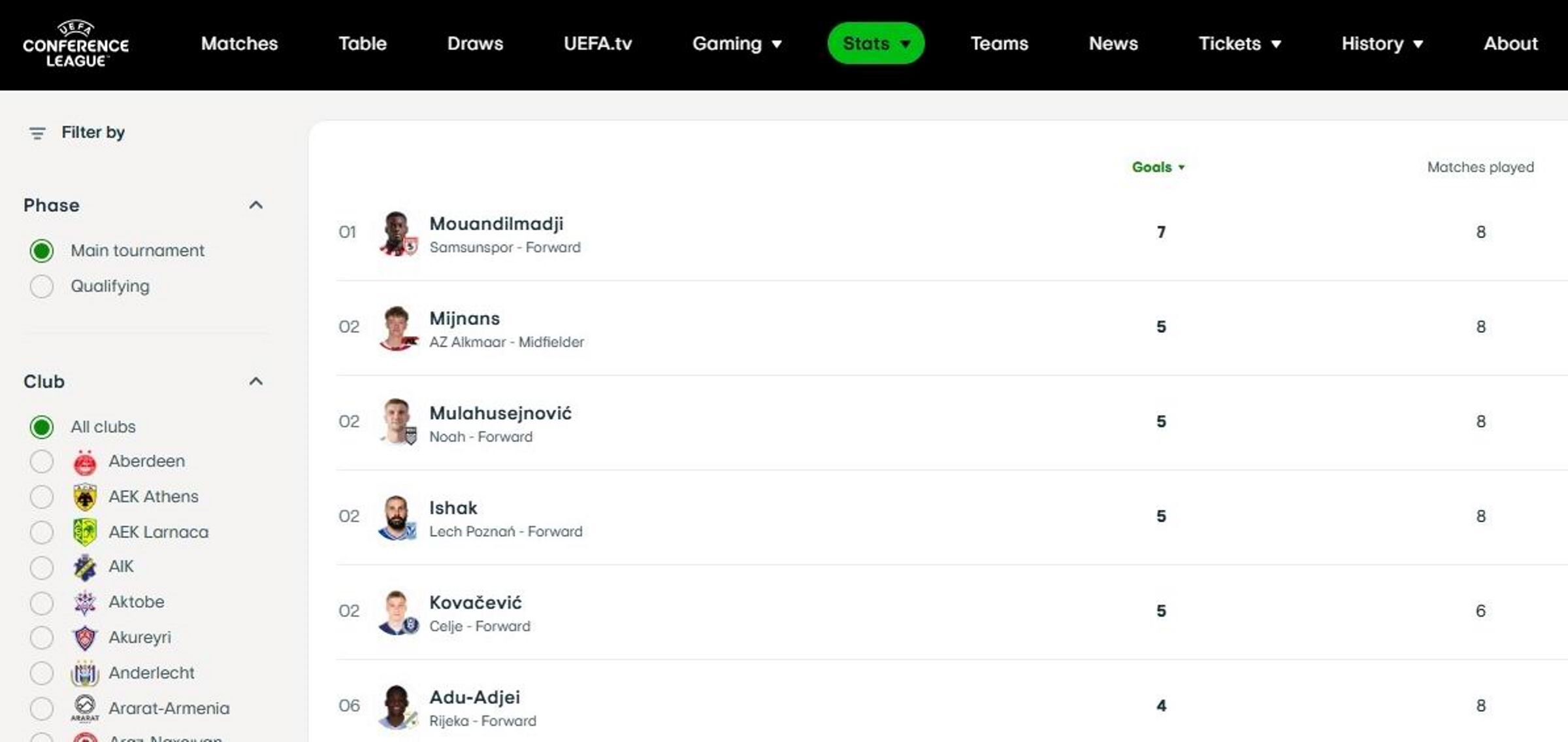 - UEFA Konferans Ligi verileri; ayrıntılar Samsun Gazetesi’nde.