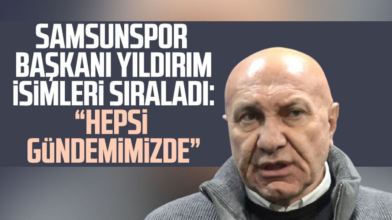 Portekizli oyuncu Afonso Sousa ile her konuda anlaştıklarına işaret eden Yıldırım, "Takımı, farklı takıma göndermek istiyor ama oyuncu Samsunspor'a gelmek istiyor. Bu hafta içinde bu transferi bitirmeye çalışıyoruz. Berkan Kutlu'yu almak istedik, fiyatı çok yüksekti, kendisi de İspanya'yı tercih etti. Eyüp Aydın'ı almak istiyoruz. Galatasaray Kulüp Başkanı Dursun Özbek ile bu hafta görüşmek istiyorum. Biz oyuncu ile anlaştık, kiralık takımıza katmak istiyoruz. Çok iyi bir stoper alacağız. Oyuncu ile anlaştık kulübüyle görüşmelerimiz sürüyor. " dedi.