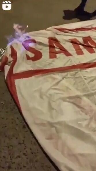 Sosyal medyada ise, kimliği belirsiz bir grubun Samsunspor bayrağını yaktığı videoyu paylaşması tepkilere neden oldu. Olayın İstanbul'da gerçekleştiği iddia edilirken, Samsunlular ise sosyal medyada yaşanan olaya sert tepki gösterdi.