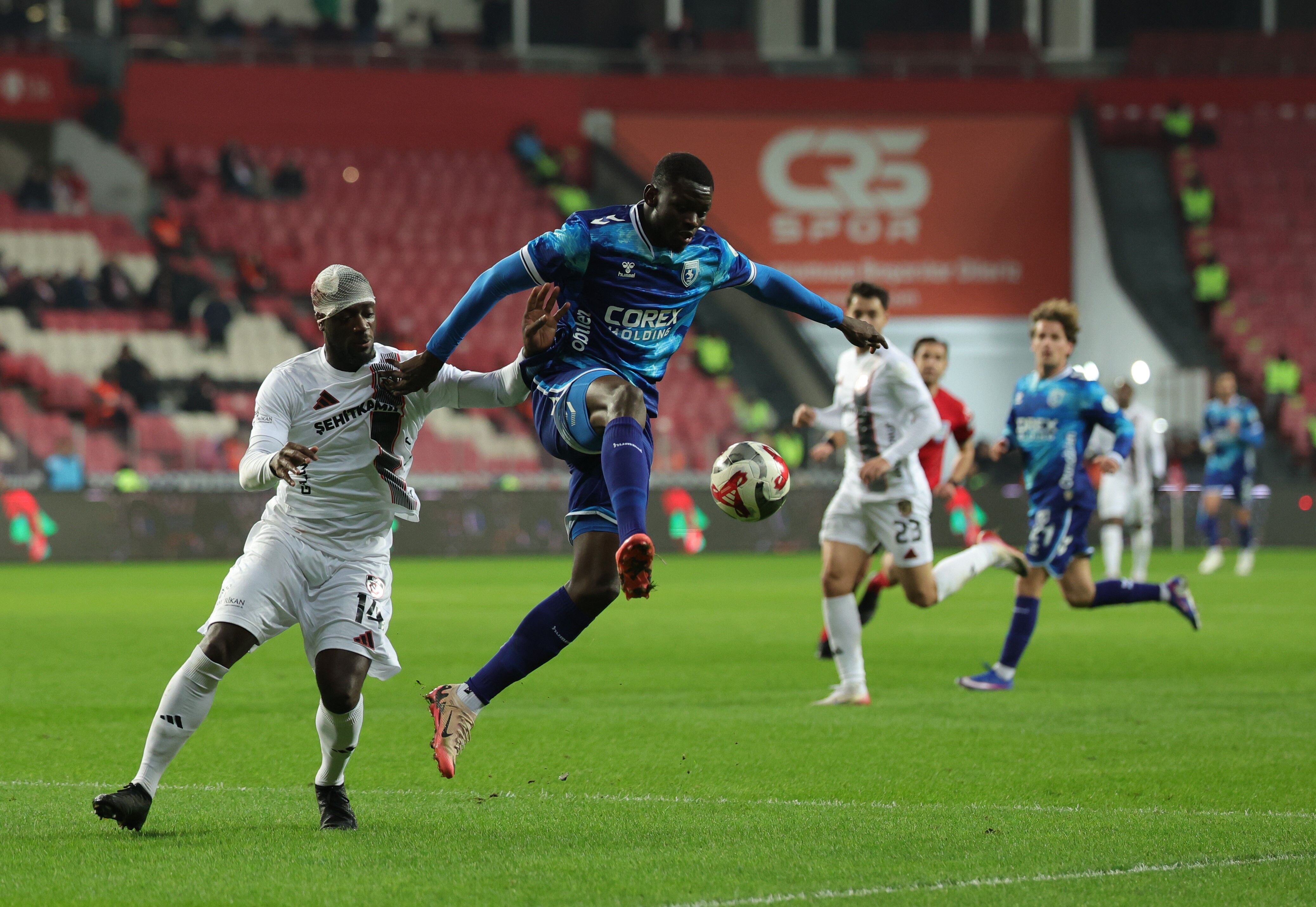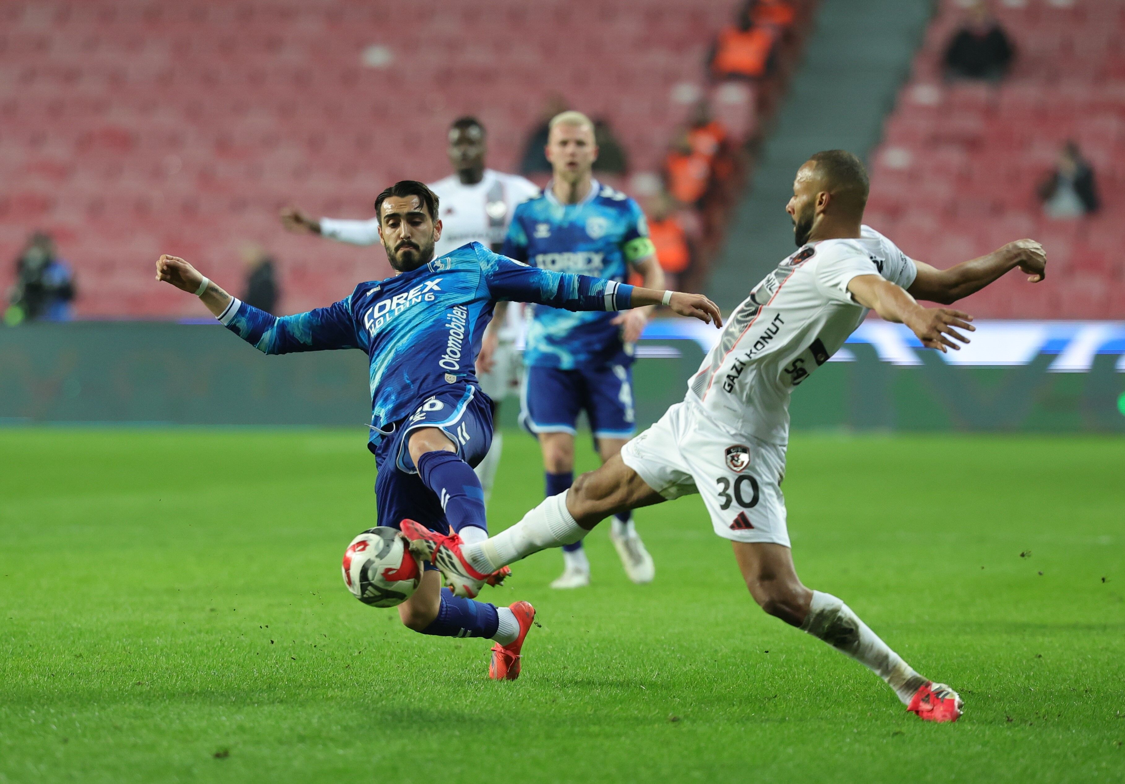 Trendyol Süper Lig’in 24. haftasında Samsun 19 Mayıs Stadyumu’nda oynanan karşılaşma tempolu başladı. Mücadelenin 9. dakikasında Samsunspor’dan Marius Mouandilmadji ile Gaziantep FK’lı Myenty Abena’nın hava topu mücadelesinde kafa kafaya çarpışması sonucu oyun kısa süreliğine durdu. Sağlık ekiplerinin müdahalesinin ardından karşılaşma kaldığı yerden devam etti. Ev sahibi ekip, 32. dakikada Rick van Drongelen ile gole çok yaklaştı ancak bu pozisyondan sonuç çıkmadı. İlk yarıda iki takım da savunma güvenliğini ön planda tutarken soyunma odasına 0-0’lık eşitlikle gidildi.
