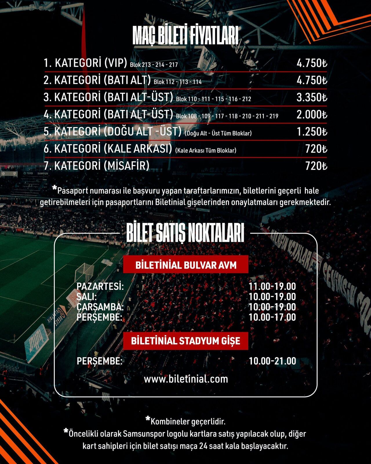 Açıklamada, kombinelerin geçerli olduğu ve öncelikli satışın Samsunspor logolu kart sahiplerine yapılacağı belirtilirken, diğer kart sahiplerinin bilet satışına maça 24 saat kala erişebileceği ifade edildi.