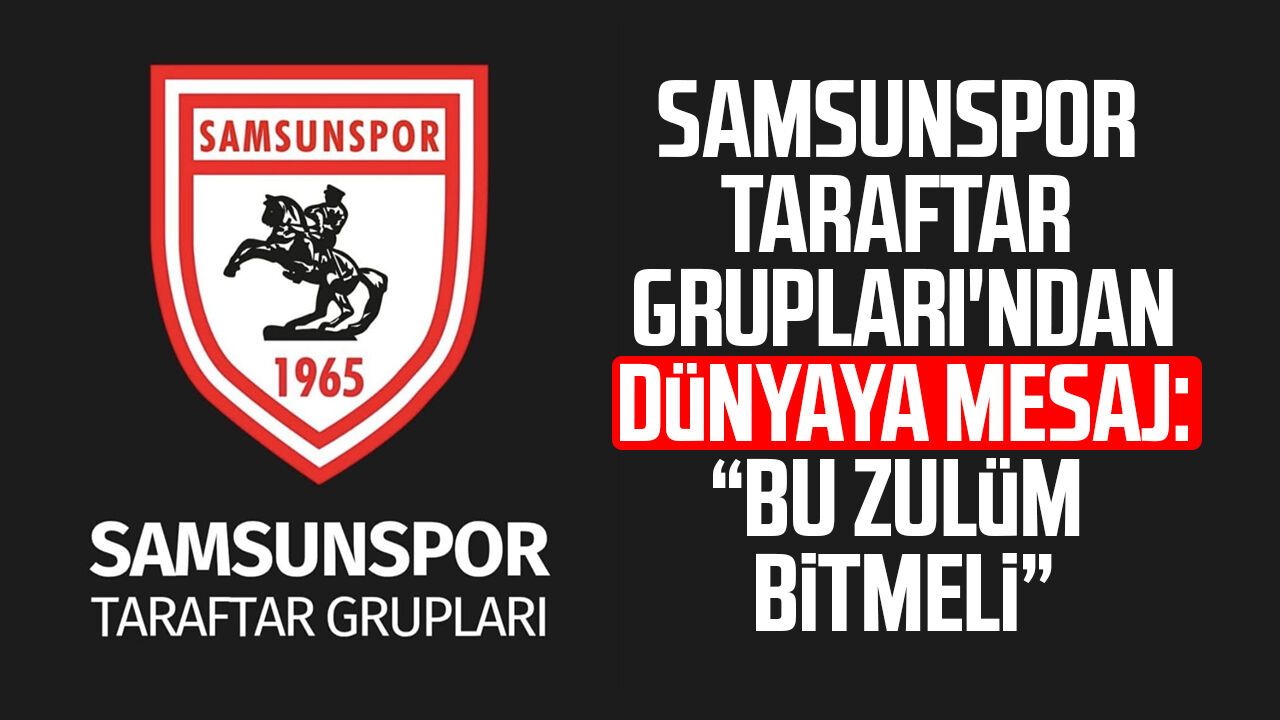 Samsunspor taraftar grupları, açıklamalarında mazlum halklarla dayanışma içinde olduklarını belirterek, yaşananların son bulması için çağrılarını yineledi.
