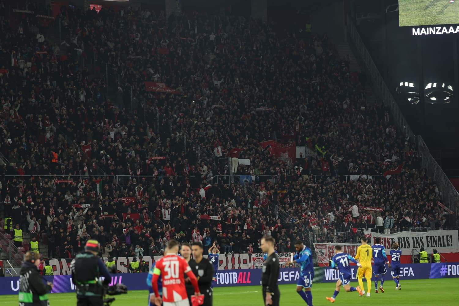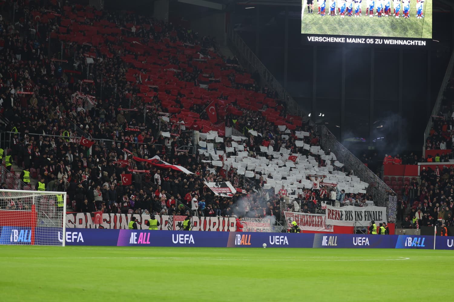 Stadyumun tamamını dolduran Mainz 05 taraftarları ise takımlarına koreografi yaparak destek verdi. Tribünlerde renkli görüntüler oluştu.