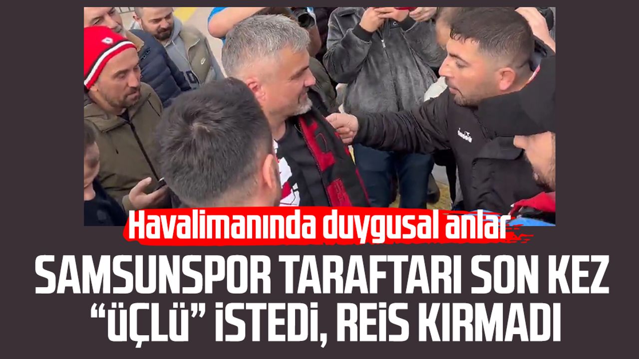 Samsunspor taraftarları, kulüple yolları ayrılan Teknik Direktör Thomas Reis’i havalimanında tezahüratlarla uğurladı. Reis, taraftara teşekkür ederek son kez “üçlü” çektirdi.
