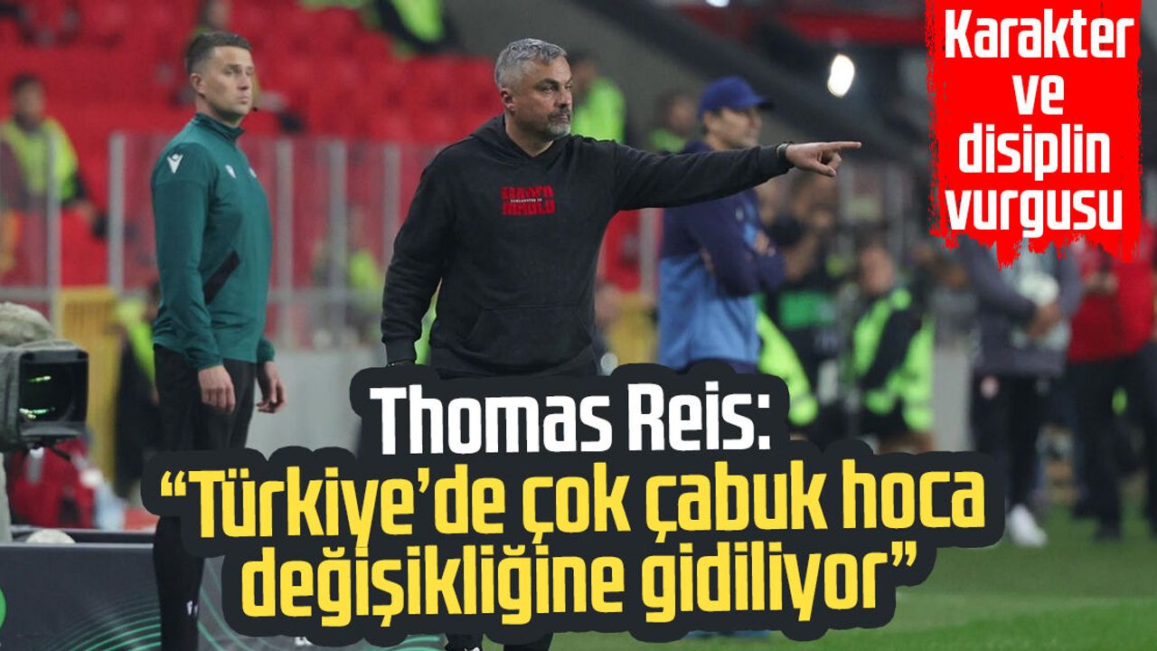 FIFA’nın verdiği iki dönemlik transfer yasağı sürecinde Samsunspor’un başına geçen ve o sezon Süper Lig’de takımı üçüncü sıraya taşıyarak Avrupa kupalarına götüren Thomas Reis, Dinamo Kiev müsabakasının ardından düzenlenen basın toplantısında başarısının sırlarını anlattı. Güçlü bir karaktere sahip olduğunu vurgulayan Reis, "İstediklerimi yapmayan oyuncular benimle sıkıntı yaşayabilir. Her futbolcum elinden gelenin en iyisini ortaya koyuyor. Antrenmanlarda da yüksek performans gösteriyorlar" dedi.