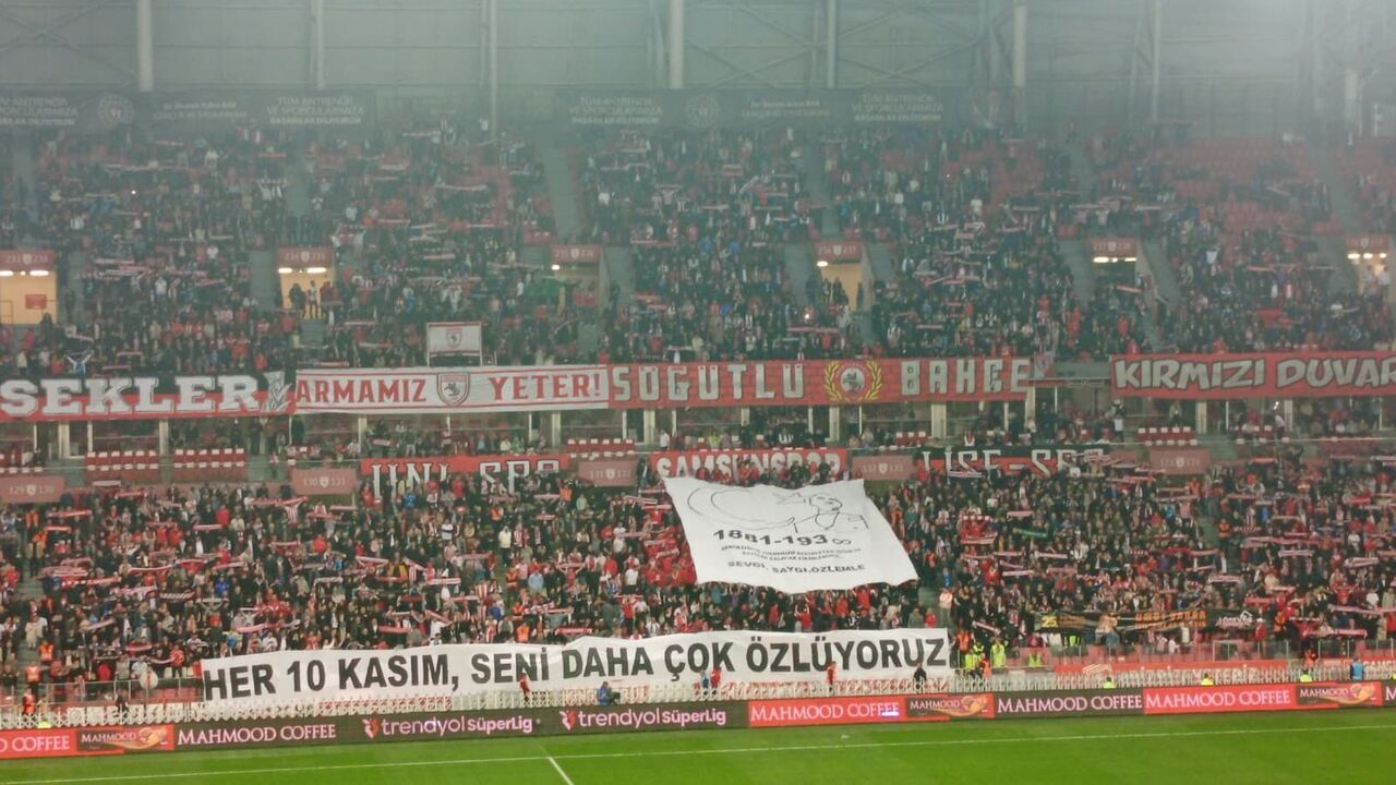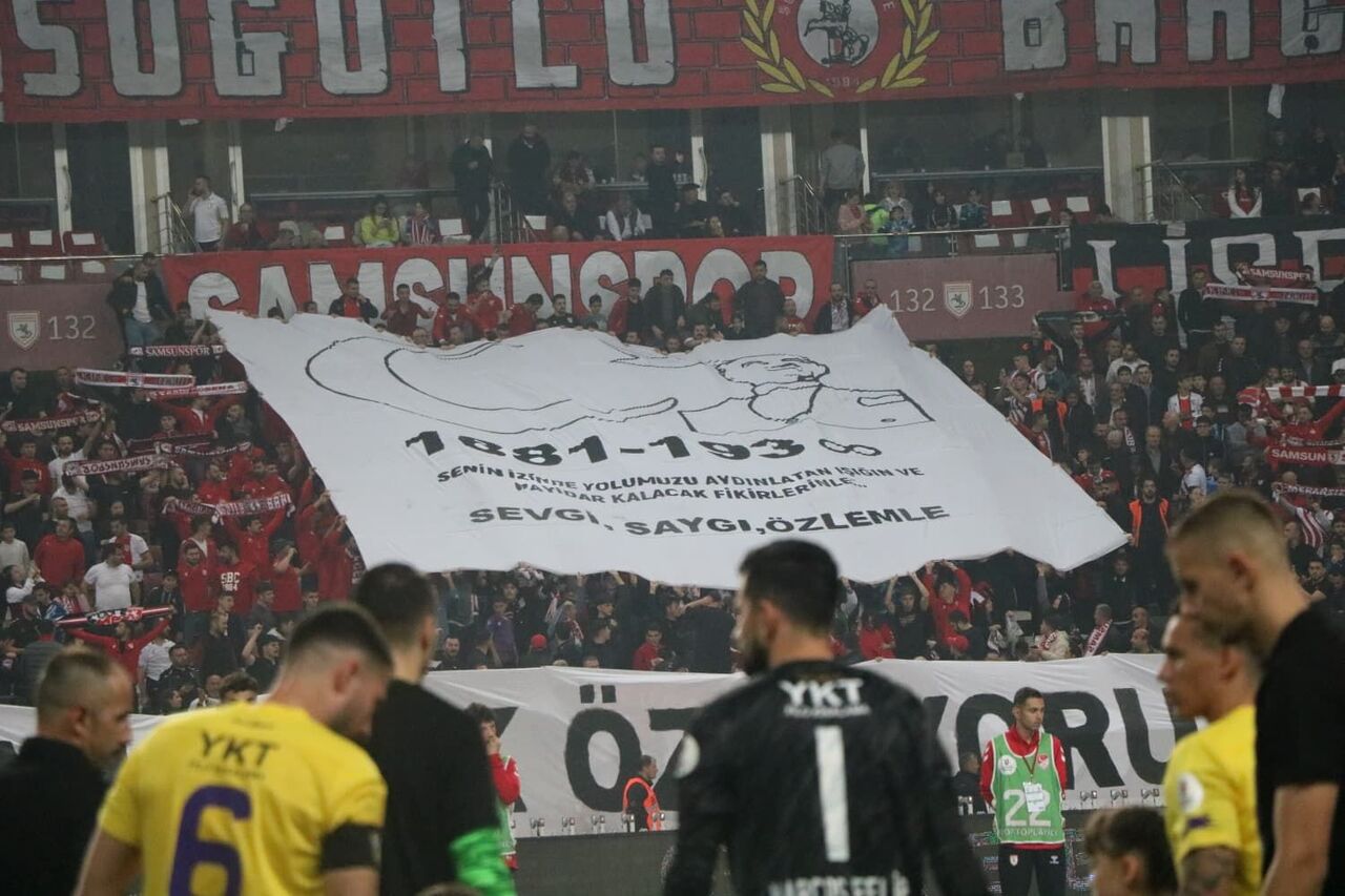 Samsunsporlu taraftarlar da tribünlerde özel pankartlar açarak Atatürk’e olan sevgi ve özlemlerini dile getirdi. Tribünlerde “Senin izinde yolumuzu aydınlatan ışığın ve yadigâr kalacak fikirlerinle… Sevgi, saygı ve özlemle” ve “Her 10 Kasım, seni daha çok özlüyoruz” yazılı pankartlar yer aldı.