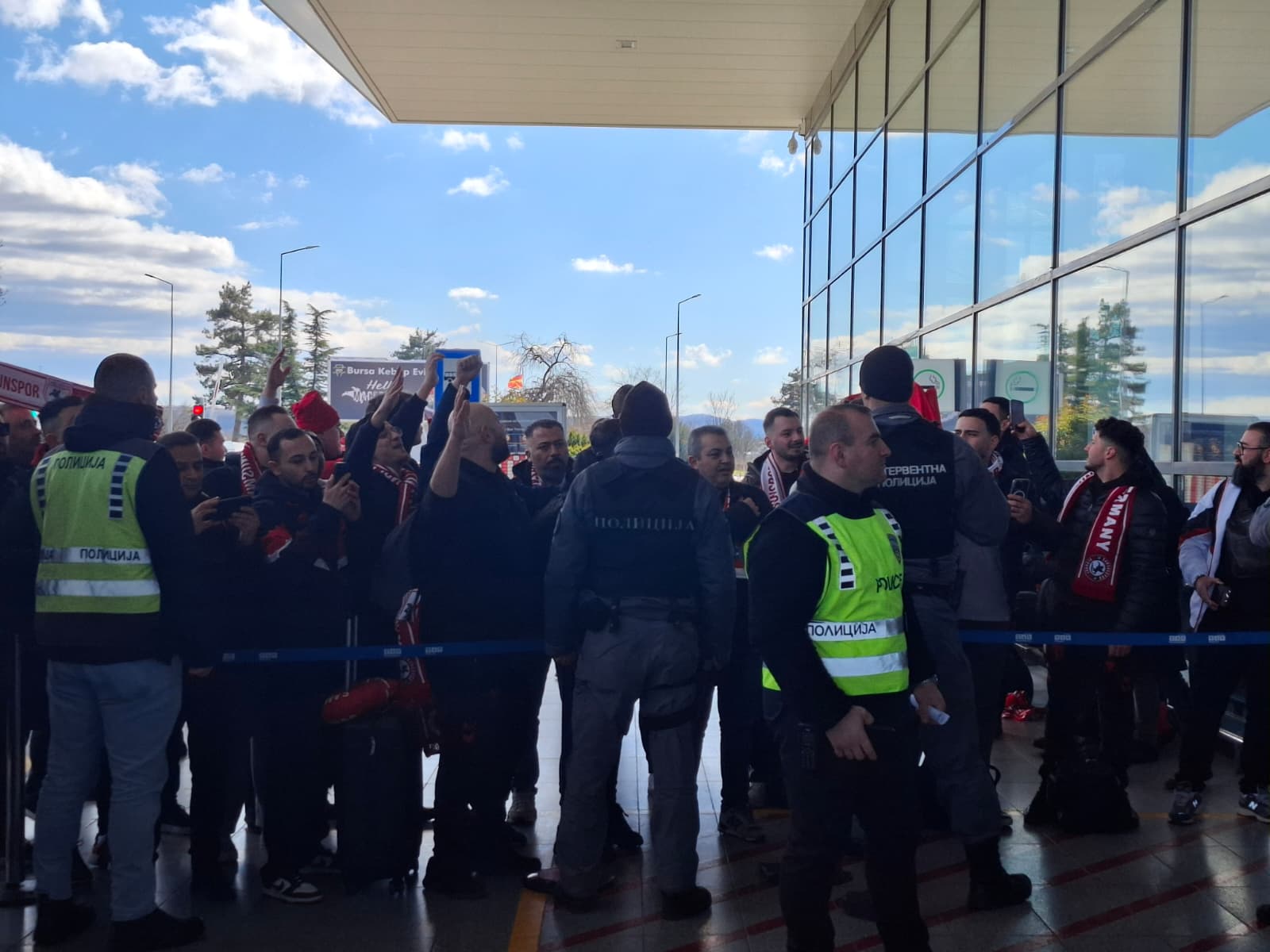 Samsunspor kafilesi, sabah saatlerinde havayoluyla çıktığı yolculuğun ardından Üsküp Havalimanı’na indi. Teknik heyet ve futbolcuları taşıyan kafileyi burada bir grup Samsunspor taraftarı karşıladı.