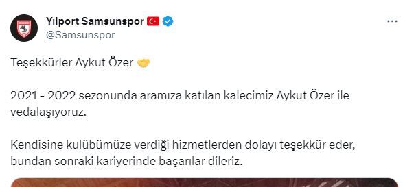 Ayrıca Yılport Samsunspor sosyal medyada yaptığı açıklamada şu ifadelere yer verdi: "Teşekkürler Aykut Özer