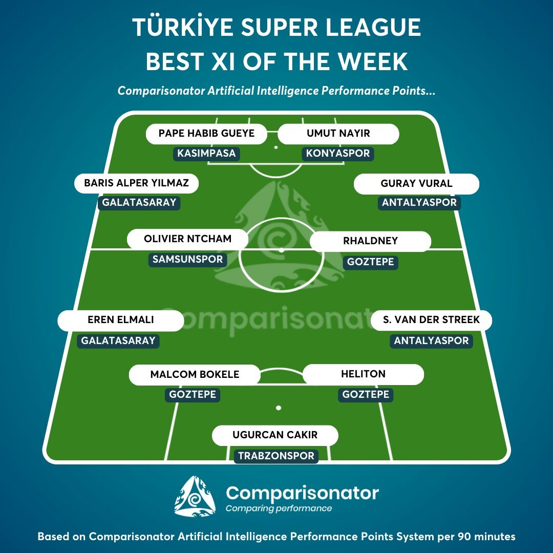 Comparisonator’un yapay zeka verilerine göre, Trendyol Süper Lig 2024/25 sezonunun en iyi yabancı futbolculardan oluşan 11’i açıklandı.