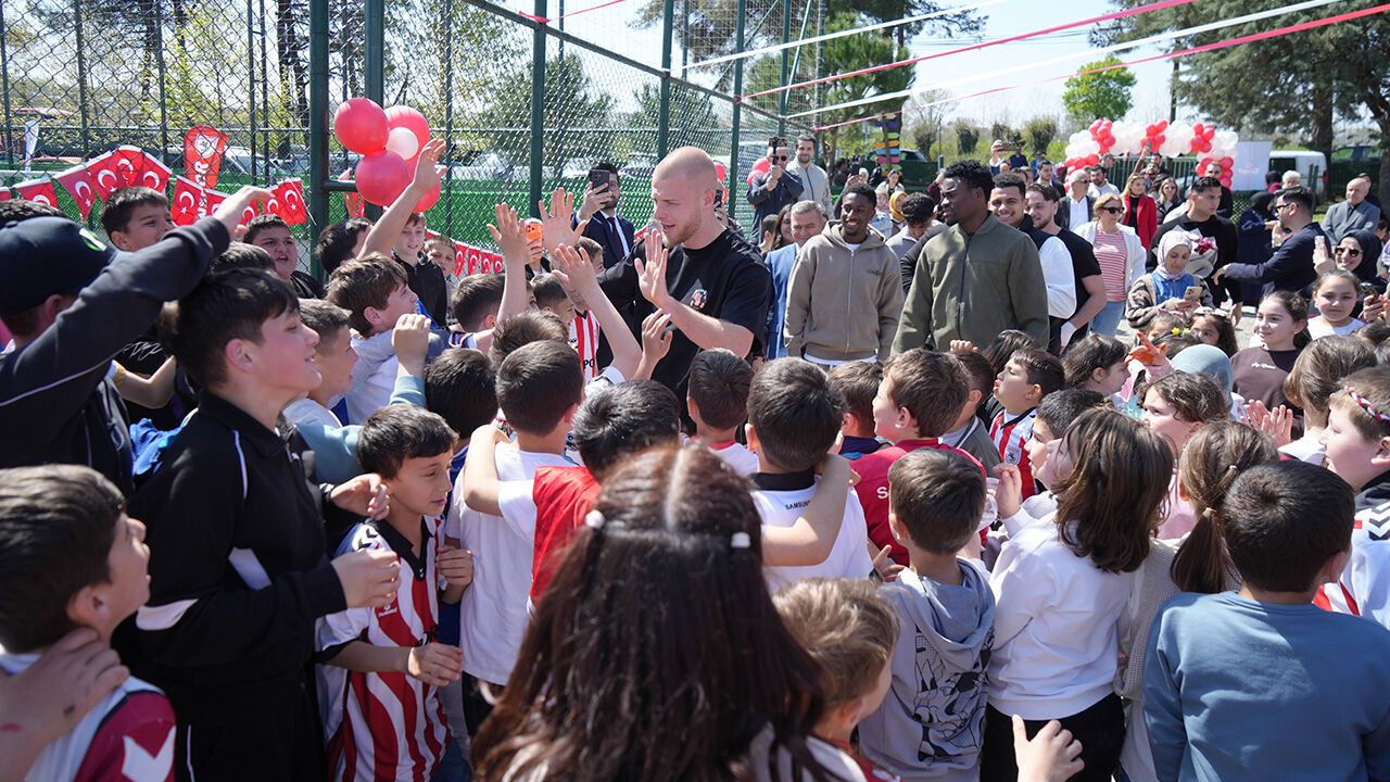 Samsunspor yönetimi ve futbolcuları, 23 Nisan Ulusal Egemenlik ve Çocuk Bayramı kapsamında Tekkeköy Kahyalı İlköğretim Okulu’nda öğrencilerle bir araya geldi. futbolcular, minik öğrencilerle birlikte maç yaparak bayram sevincine ortak oldu.