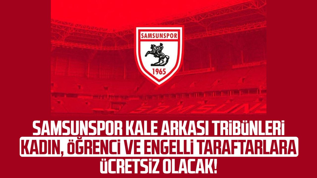 Samsunspor, kulüp tarafından alınan karar doğrultusunda, UEFA Avrupa Konferans Ligi karşılaşmaları ile Galatasaray, Beşiktaş ve Trabzonspor maçları hariç tüm Trendyol Süper Lig iç saha müsabakalarında kale arkası tribünlerini kadın, öğrenci ve engelli taraftarlar için sezon sonuna kadar ücretsiz yapacağını açıkladı.