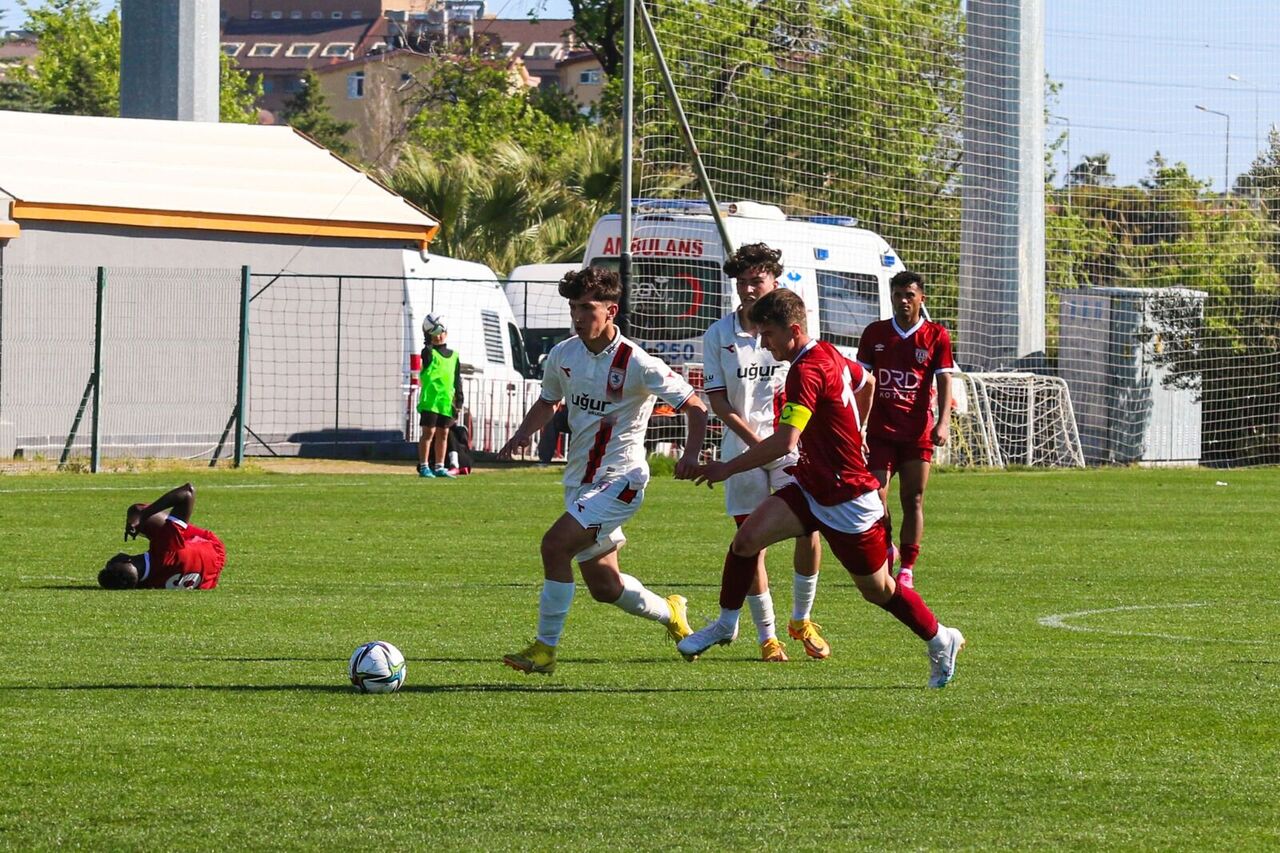 Antalya Zeki Demirci Spor Komleksi’nde oynanan karşılaşmanın normal süresi 1-1 bitti. Penaltılara geçilen karşılaşmada, Kırmızı beyazlılar, Elano Lorenzo Yeğen, Polat Yaldır, Alper Efe Pazar, Atakan Mert Özdemir, Oruç Yılmaz, Mustafa Haluk Tan, Enes Albak ve son penaltı atışını kaleci Taha Tosun gole çevirerek rakibini 7-8 mağlup etti. Böylece, Kırmızı Beyazlılar, Elit A Ligi'ne yükselmeyi garantiledi. Samsunspor, 16 Nisan Pazar günü Eyüpspor U19 takımı ile 1’incilik 2’ncilik maçına çıkacak.