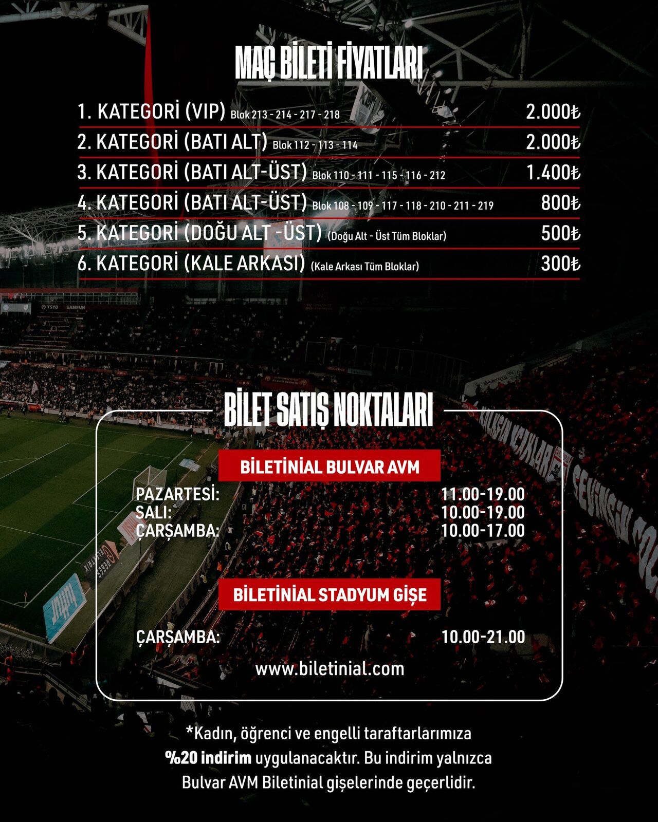 Bulvar AVM Biletinial gişesinden bilet alan kadın, öğrenci ve engelli taraftarlar için tüm tribünlerde yüzde 20 indirim uygulanacak.