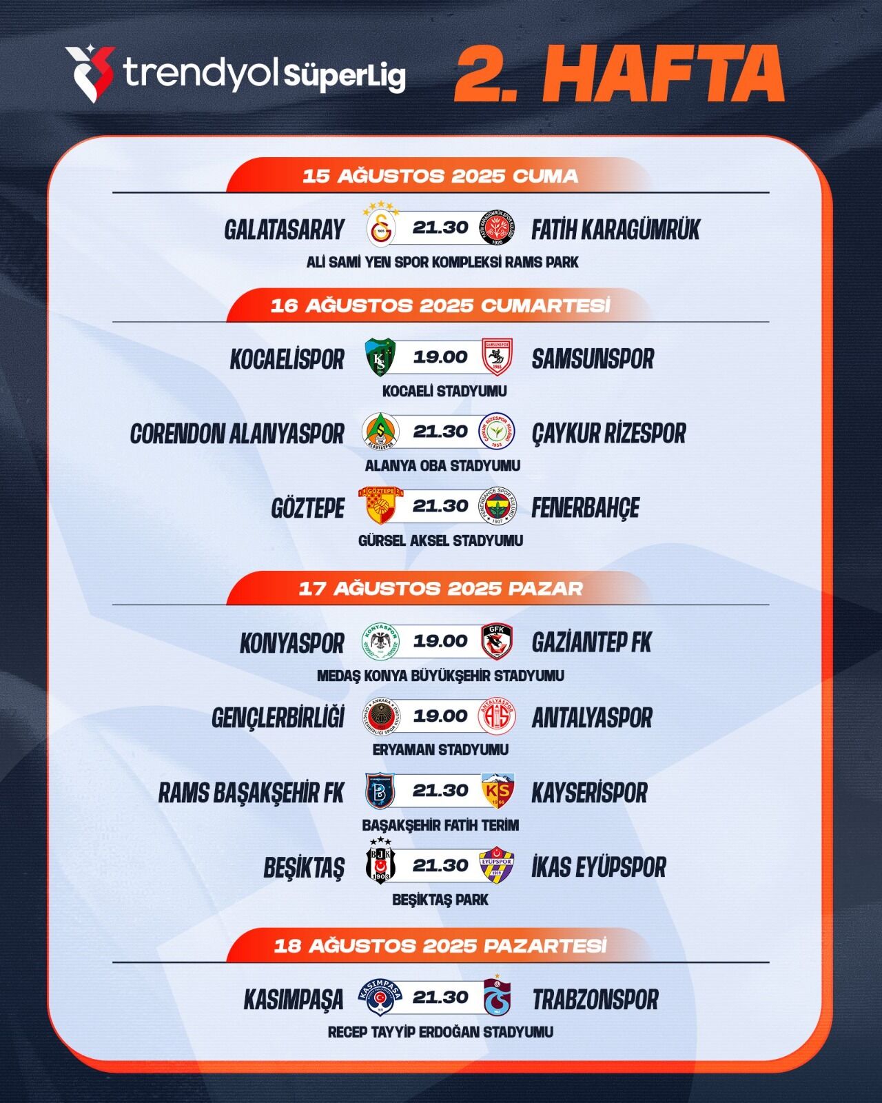 Samsunspor, ligin ikinci haftasında ise 16 Ağustos Cumartesi günü saat 19.00’da deplasmanda Kocaelispor ile karşı karşıya gelecek.