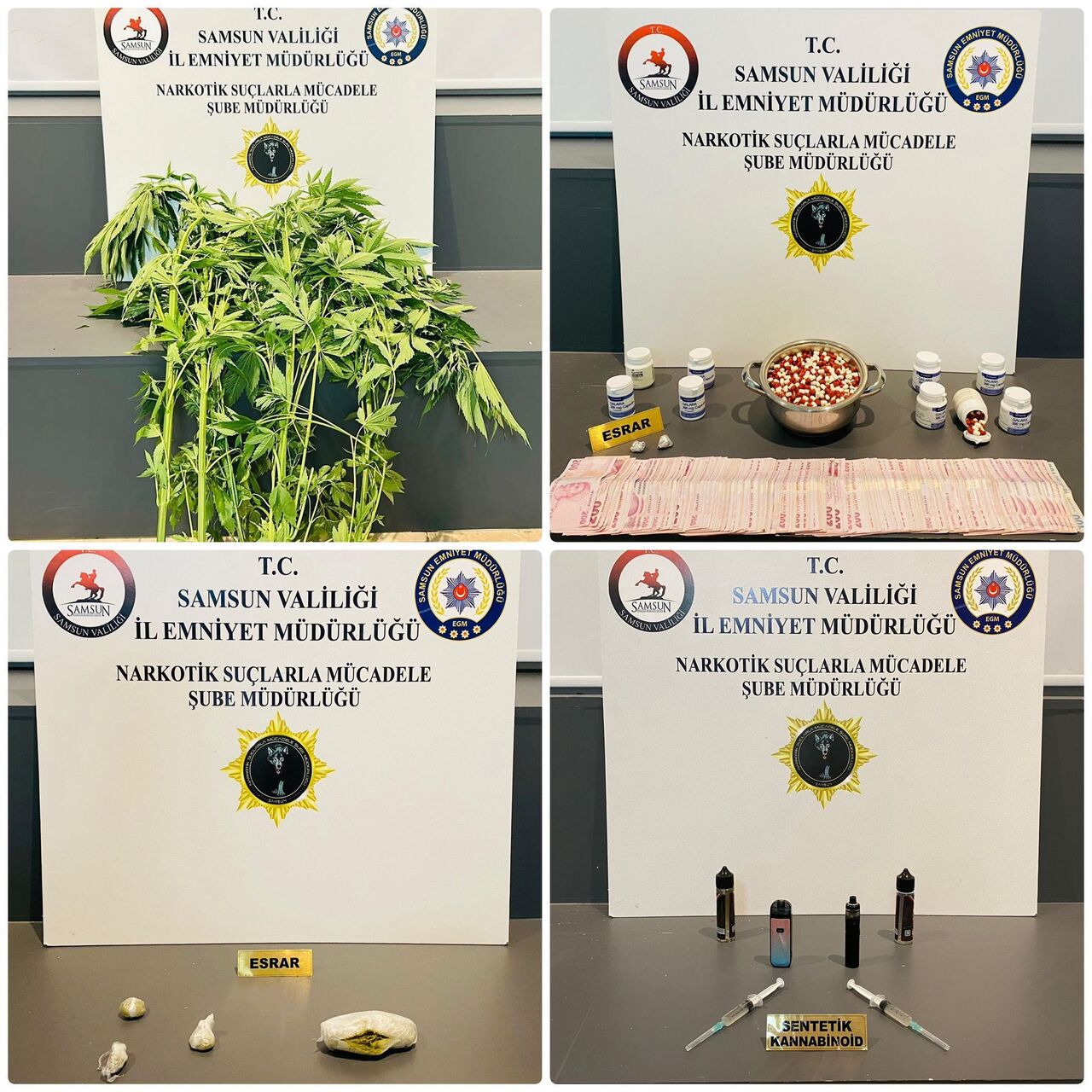 İl Emniyet Müdürlüğü Narkotik Suçlarla Mücadele Şube Müdürlüğü ekipleri tarafından Atakum, İlkadım, Canik ve Tekkeköy ilçelerinde uyuşturucu madde ticareti yaptığı belirlenen şahıslara yönelik eş zamanlı operasyon düzenlendi.