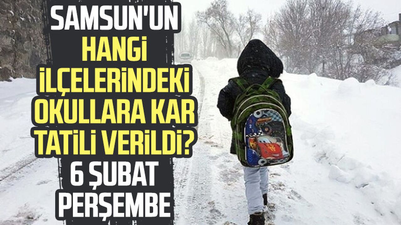 Samsun'un 19 Mayıs, Alaçam, Asarcık, Ayvacık, Atakum, Bafra, Canik, Çarşamba, Havza, Kavak, Salıpazarı, Terme, Yakakent Vezirköprü ilçelerinde kar yağışı nedeniyle eğitime 1 gün ara verildiği açıklandı.