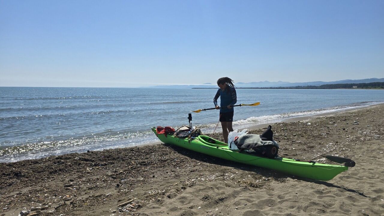 Yolculuğu süresince hava şartları elverdiğince gündüzleri kürek çeken Çağlar, akşamları da sahilde çadır kurarak dinleniyor, ihtiyaçlarını gideriyor.