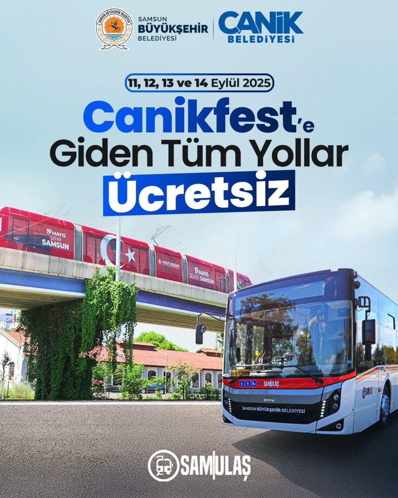 “CANİKFEST yolculuğunda ulaşım Samsun Büyükşehir Belediyemizin desteğiyle ÜCRETSİZ.