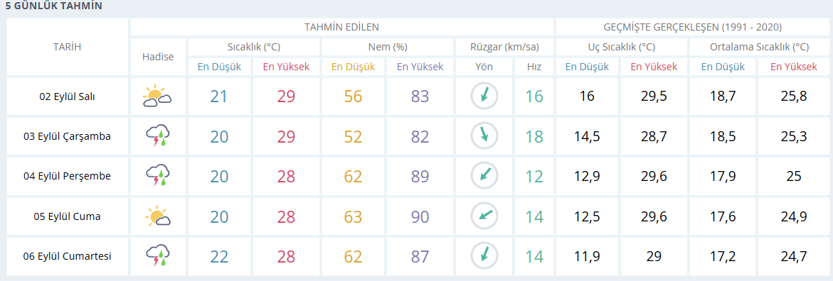 Cumartesi günü ise gök gürültülü sağanak yeniden kenti etkisi altına alacak. 28°C’lik hava sıcaklığıyla birlikte nemin yine %87 seviyelerinde olması bekleniyor.