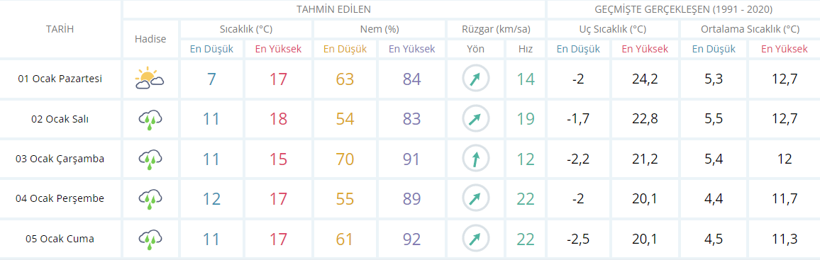 SAMSUN 5 GÜNLÜK HAVA DURUMU TAHMİNİ