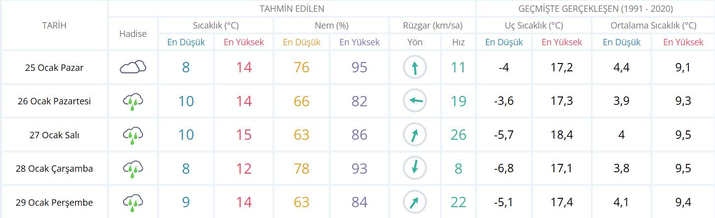 28 Ocak Çarşamba günü ise yağışla birlikte sıcaklık biraz düşerek 8 ila 12 derece seviyelerine inecek.