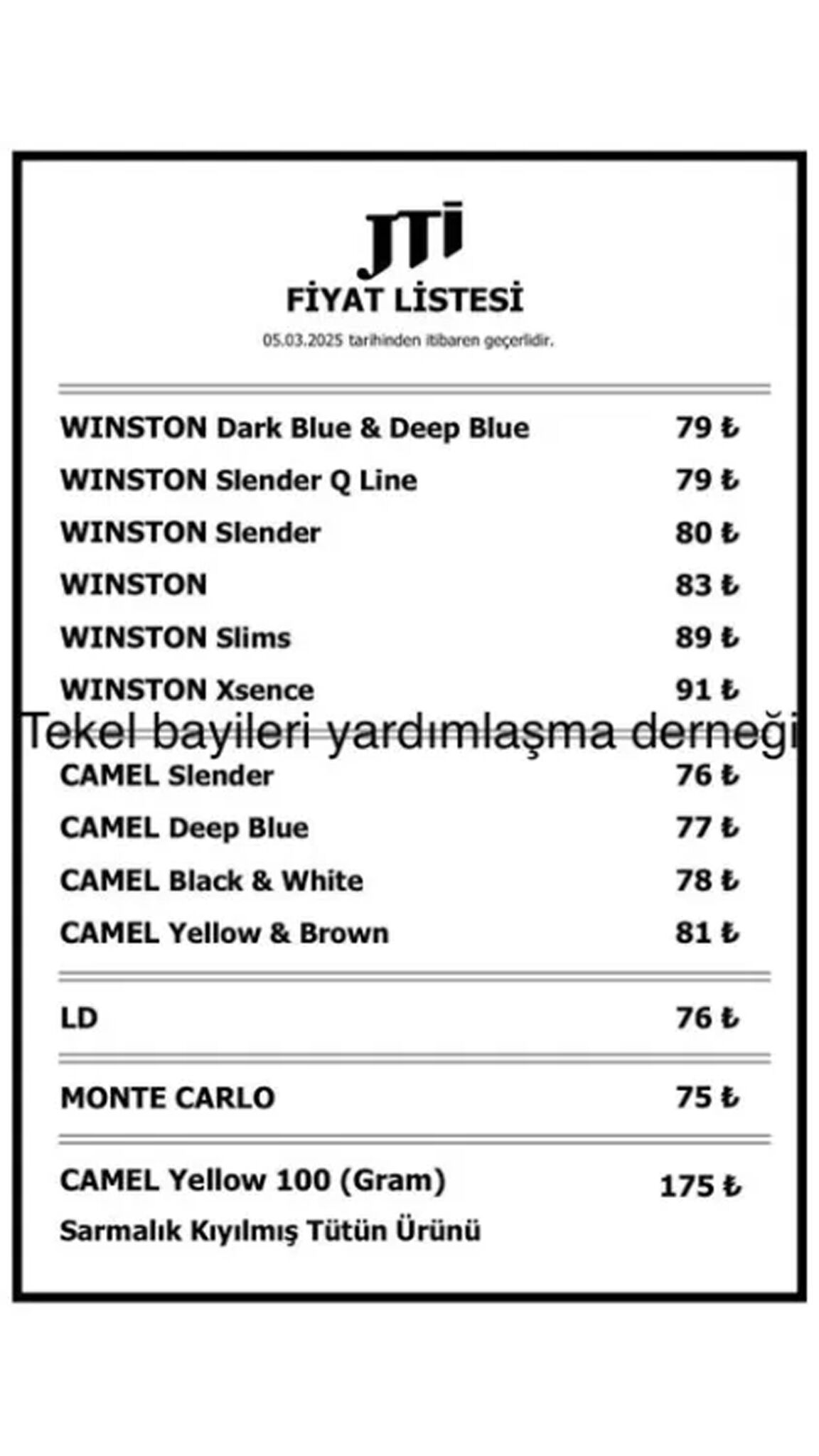 Dündar'ın paylaştığı listeye göre, JTI grubunun yeni fiyat tarifesi şöyle: