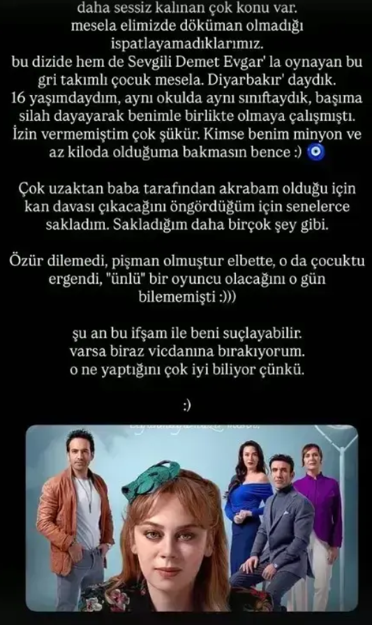 Bahar dizisinde iki sezondur "Timur Yavuzoğlu" karakterini canlandıran oyuncu Mehmet Yılmaz Ak hakkında, fotoğraf sanatçısı Dilan Bozyel tarafından sosyal medya üzerinden ağır suçlamalar yöneltilmişti. Bozyel, 16 yaşındayken Ak tarafından silah tehdidiyle birlikte olmaya zorlandığını öne sürmüş, ismini vermeden "Demet Evgar'la aynı dizide oynayan gri takımlı çocuk" ifadeleriyle işaret ettiği kişinin Ak olduğunu iddia etmişti.