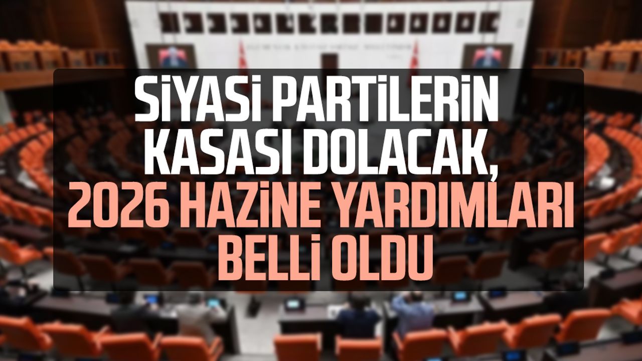 TBMM'de kabul edilen 2026 bütçesine göre siyasi partilere yapılacak Hazine yardımlarının miktarı da belli oldu. Son genel seçimlerde barajı aşarak parlamentoda temsil hakkı kazanan 5 partiye, oy oranları doğrultusunda milyarlarca liralık kaynak sağlanacak. Hazine yardımında en yüksek miktarı ise Meclis'teki sandalye üstünlüğüyle AK Parti alacak. Partilere toplam 5.6 milyar liralık yardım yapılacak.