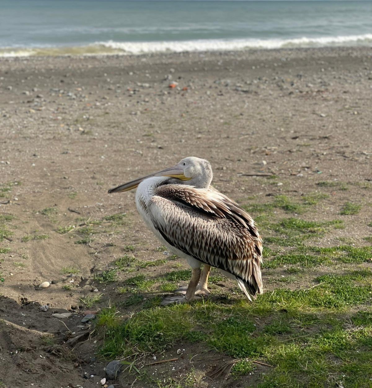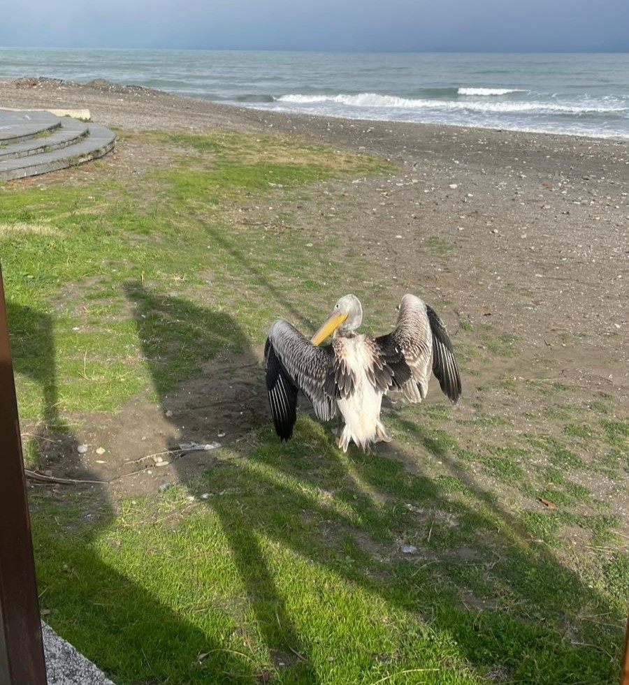 - Samsun Atakum: Sahilde görülen pelikan vatandaşların ilgisini çekti.