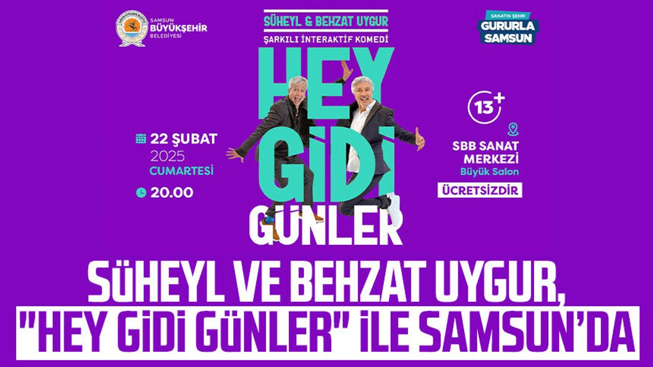 SBB, Süheyl ve Behzat Uygur kardeşlerin, şarkılı interaktif komedisini Samsunlu vatandaşlarla buluşturuyor. 22 Şubat Cumartesi günü saat 20.00’de SBB Sanat Merkezi’nde sahne alacak olan Uygur kardeşler, izleyicilere sadece bir tiyatro gösterisi sunmakla kalmayacak aynı zamanda seyircilerin aktif olarak katılabileceği bir deneyim yaşatacak. "Hey Gidi Günler" ile Uygur kardeşlerin enerjik performansı, izleyicileri hem güldürecek hem de müzikle nostaljik bir yolculuğa çıkararak izleyicilere eğlenceli anlar yaşatacak.
