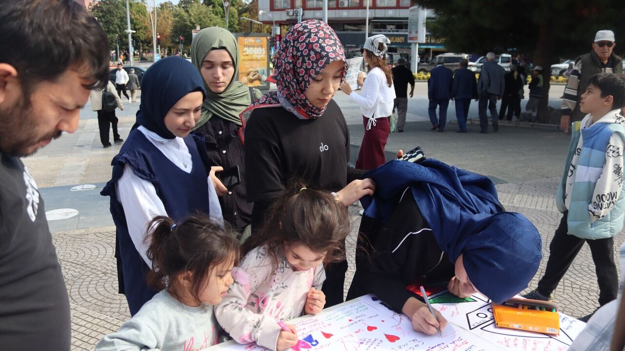Samsun’da Gazze’ye yönelik ablukanın kaldırılması ve insani yardımların ulaştırılması amacıyla yola çıkan Küresel Sumud Filosu’na destek vermek amacıyla anlamlı bir etkinlik düzenlendi. Cumhuriyet Meydanı'nda kurulan stantta bir araya gelen vatandaşlar, yazdıkları mesajlar, dualar ve çizdikleri resimlerle hem Gazze halkına hem de filo aktivistlerine umut ve dayanışma gönderdi.