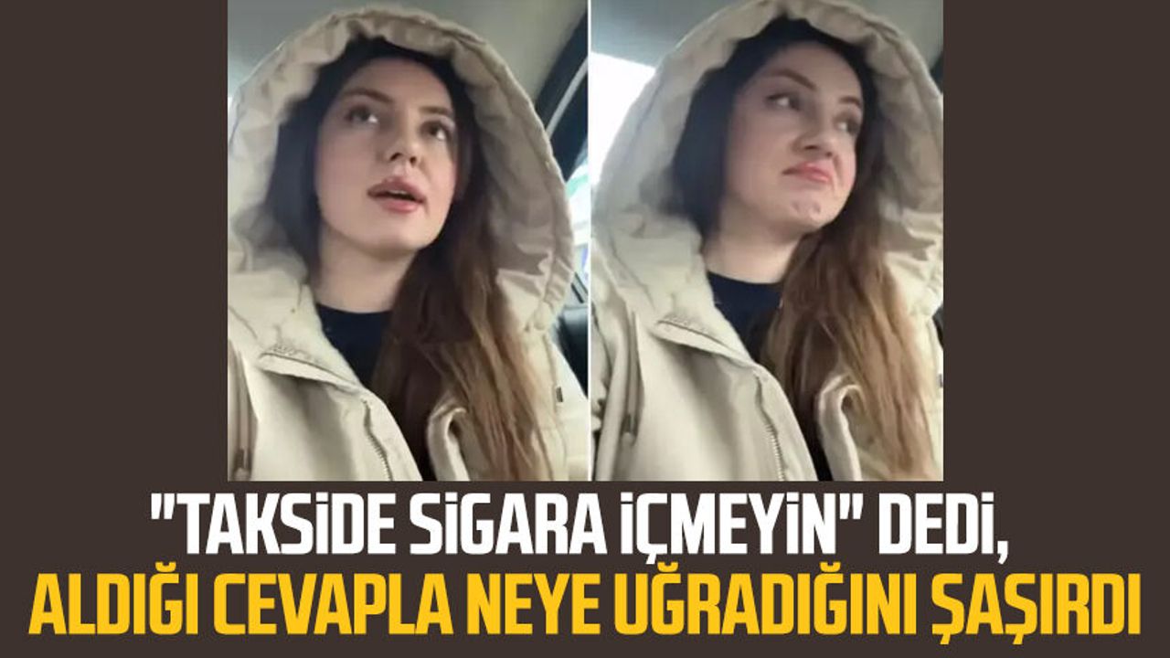 Taksi şoförünün sigara içmesine tepki gösteren genç kadın, aldığı cevap karşısında neye uğradığını şaşırdı. Yaptığının yanlış olmadığını savunan taksi şoförü, "Hiç mi içilmesin diyorsunuz? Değişik bir yaklaşım." yanıtını verdi.