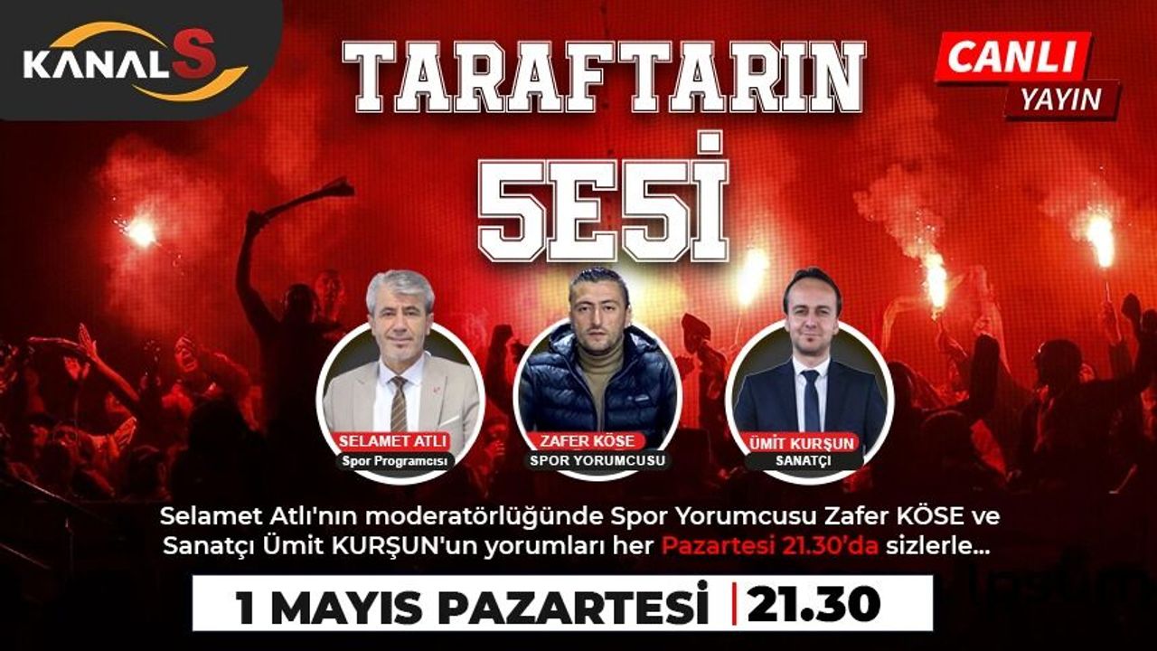 Selamet Atlı'nın moderatörlüğünde, Spor Yorumcusu Zafer Köse ve Sanatçı Ümit Kurşun'un konuk olduğu Taraftarın Sesi 1 Mayıs Pazartesi günü saat 21.30'da Kanal S'de. ⚽