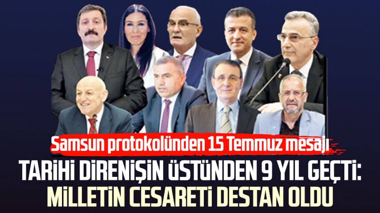 Samsun Valisi Orhan Tavlı başta olmak üzere, belediye başkanları, milletvekilleri ve STK temsilcileri, 15 Temmuz Demokrasi ve Milli Birlik Günü dolayısıyla yayımladığı mesajlarda, Türk milletinin canı pahasına devletine ve vatanına sahip çıktığını, dünyada eşi benzeri olmayan bir cesaretle kalkışmacı hainlerin geri püskürtüldüğünü dile getirdi