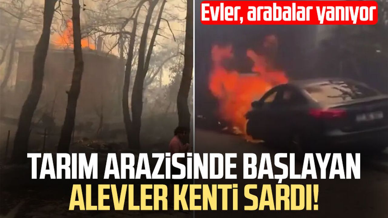 Bölgeden gelen görüntüler de yangının şiddetini gözler önüne serdi. Güzelyalı'da orman yangını nedeniyle 3 yerleşim yeri boşaltılırken bazı evler ve arabalar da alevler ulaştı. Ekipler ve vatandaşlar evleri söndürmek için seferber oldu.