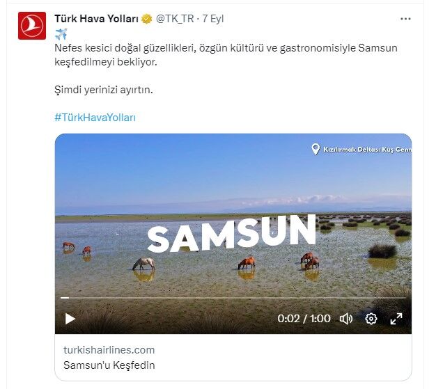 Kültür ve Turizm Bakanı Mehmet Nuri Ersoy tarafından basına tanıtılan Samsun tanıtım videosunun gösterime girdiği, THY'nin sosyal medya hesaplarından da duyuruldu.