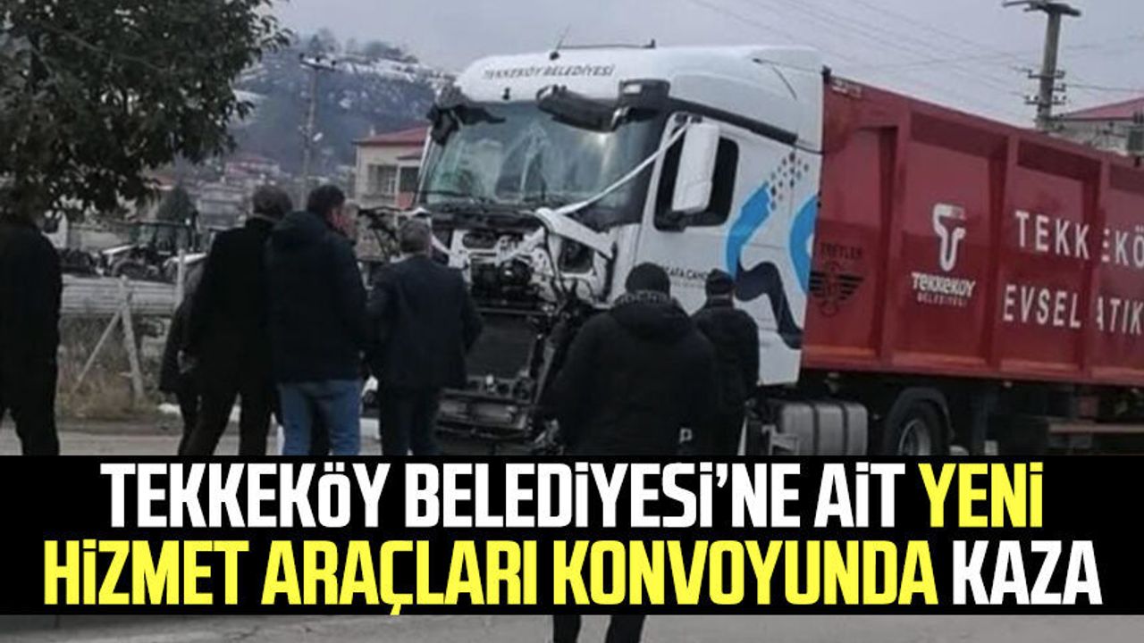 Samsun’un Tekkeköy ilçesinde, Tekkeköy Belediyesi'ne ait yeni hizmet tırlarının bulunduğu konvoyda kaza yaşandı.