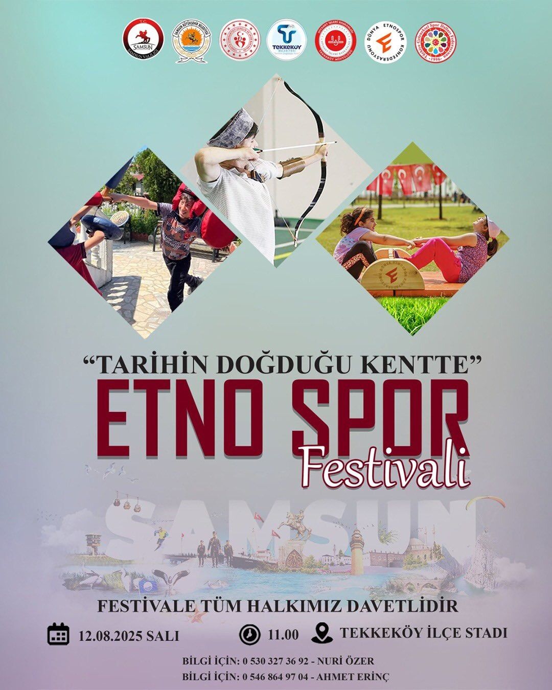 Tekkeköy, tarihi ve kültürel mirasını yansıtan anlamlı bir etkinliğe ev sahipliği yapıyor. Tekkeköy Belediye Başkanı Mustafa Candal, sosyal medya hesabından yaptığı açıklamada “Tarihin Doğduğu Kentte Etnospor Finali”nin dün itibari ile başladığını belirtti. Kaymakamlık, Belediye, İlçe Müftülüğü, Gençlik ve Spor İlçe Müdürlüğü ile Samsun Büyükşehir Belediyesi iş birliğiyle hayata geçirilen proje, Tekkeköy İlçe Stadı’nda büyük finalle taçlanacak. Etkinlikte geleneksel spor dalları, renkli gösteriler ve unutulmaz anlar katılımcıları bekliyor. Başkan Candal, tüm ilçe halkını ve çocukları bu coşkuya ortak olmaya davet ederek, “İlçemizin tüm çocuklarını ve kıymetli hemşehrilerimizi bu görsel şölende buluşmaya çağırıyorum” ifadelerini kullandı.