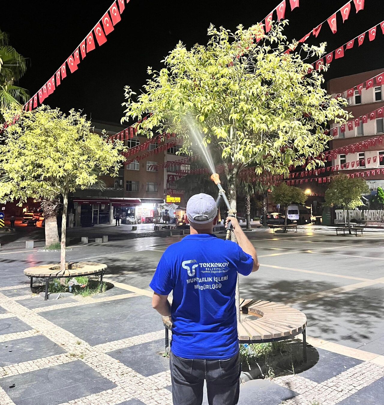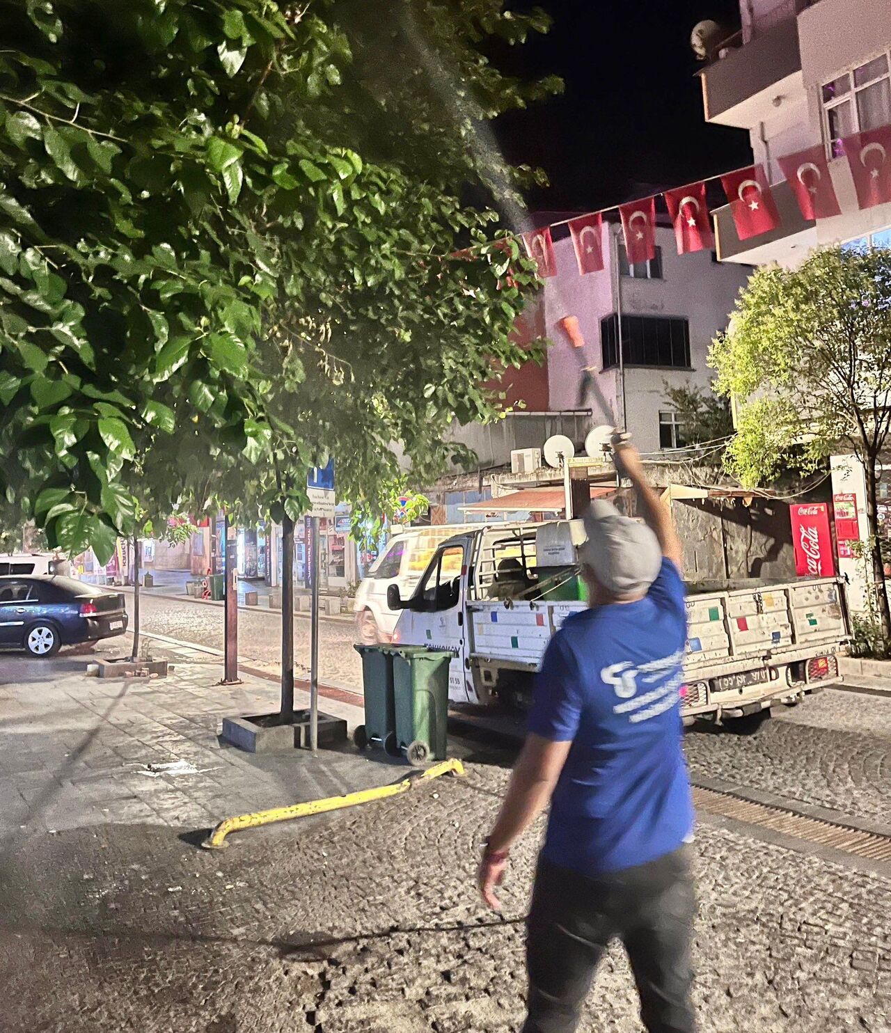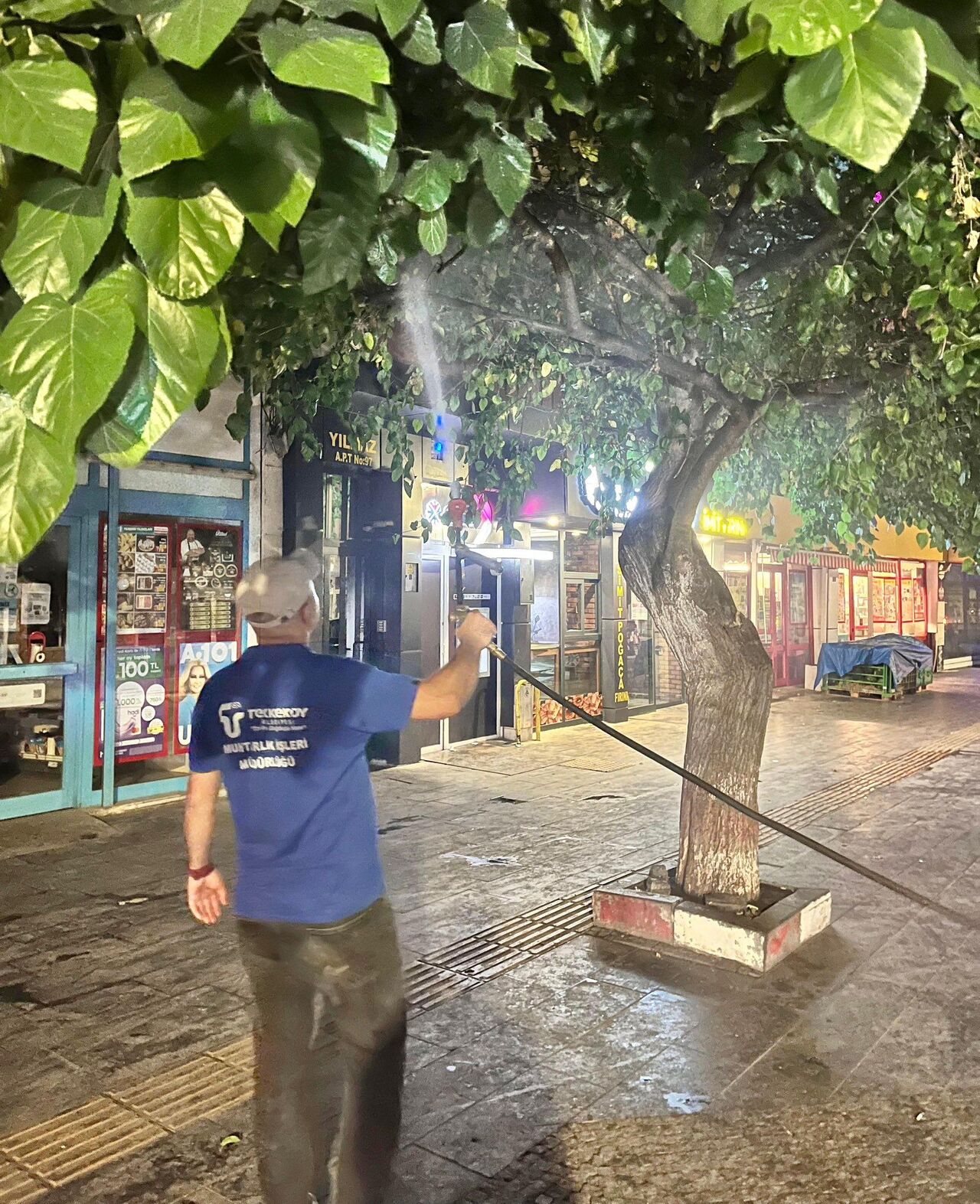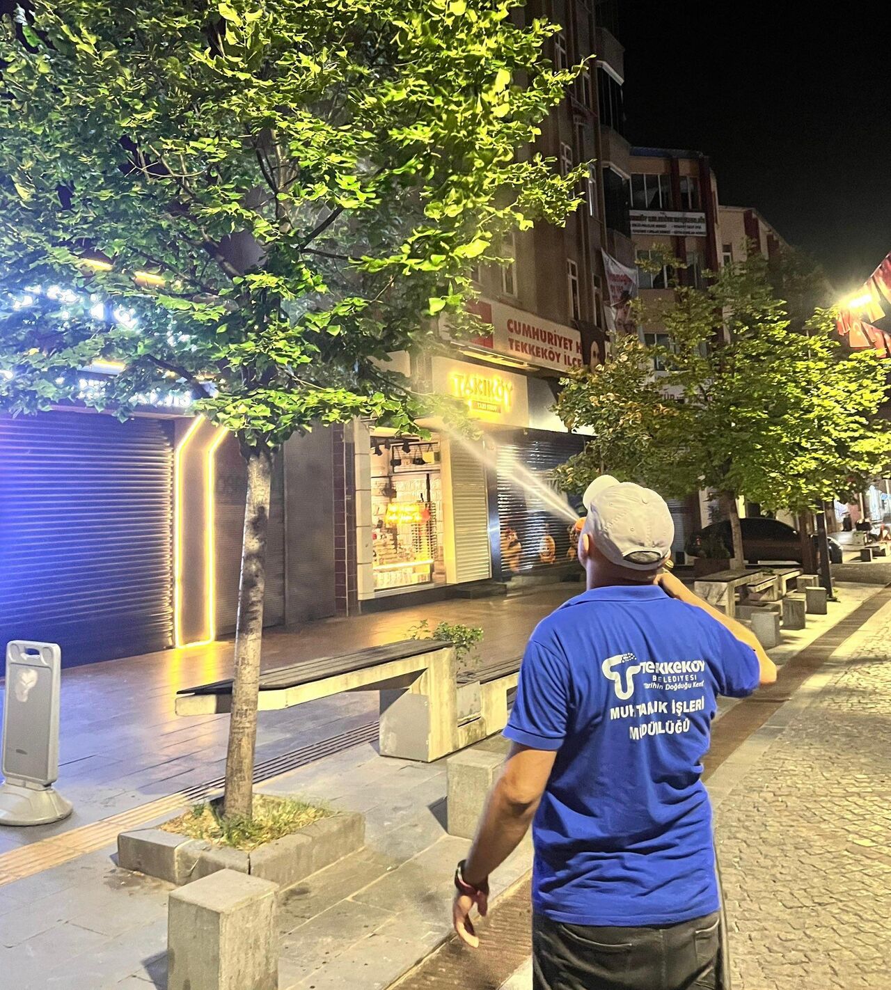 İLAÇLAMA ÇALIŞMALARI GECE SAATLERİNDE YÜRÜTÜLÜYOR